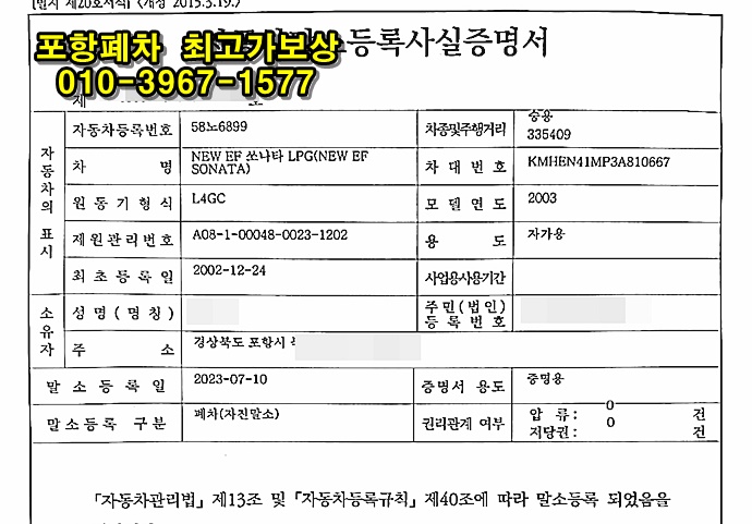 포항폐차장 손해 보지않고 유리하게 보상금 받기 본문