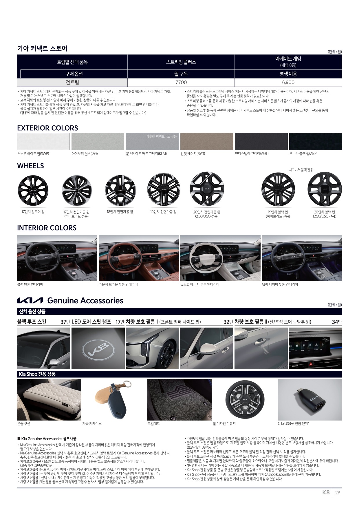 외장·내장 선택 사양도 풍부하다. 외장은 화이트와 실버, 그레이, 베이지, 블랙 등 클래식 컬러에 더해 매트 질감이나 베이지 톤처럼 고급스러움을 강조한 색상을 제공하며, 상위 트림·블랙 트림에서는 전용 휠 디자인이 더해져 존재감이 뚜렷해진다. 실내는 블랙 단일 톤부터 브라운 혹은 뉴트럴 베이지 계열의 투톤 인테리어까지 선택 폭이 넓다.