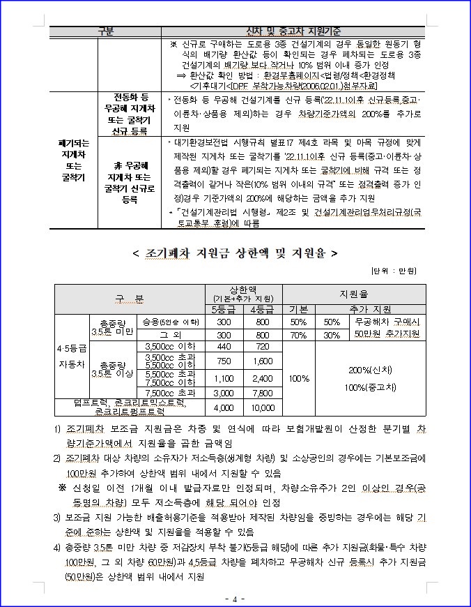 또한 사고 등으로 인해서 폐차하거나 신청전에 미리 폐차를 한 경우에는 지원대상에서